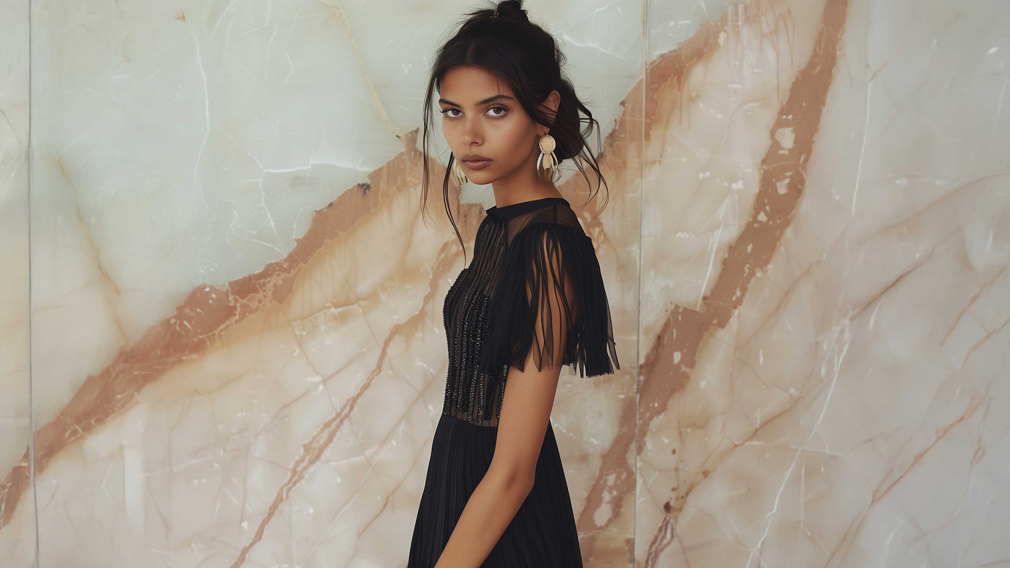 Women Navy Blue V-Neck Floral Peplum Dress – Elegant Sleeveless Party Dress